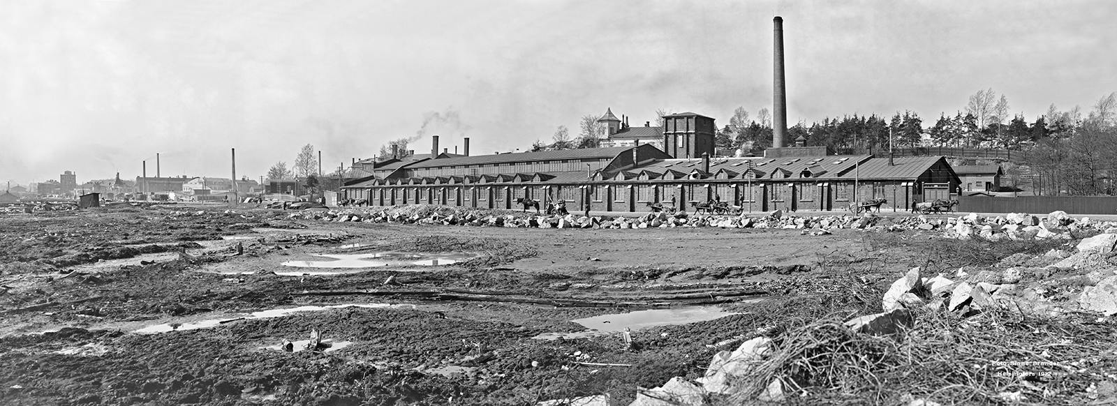 1912 . Helsingin kaupungin sähkölaitos, Suvilahden voimalaitos, Sörnäisten rantatie 20. Taustalla Sörnäisten rantatie 31, Suvilahden kasarmi.