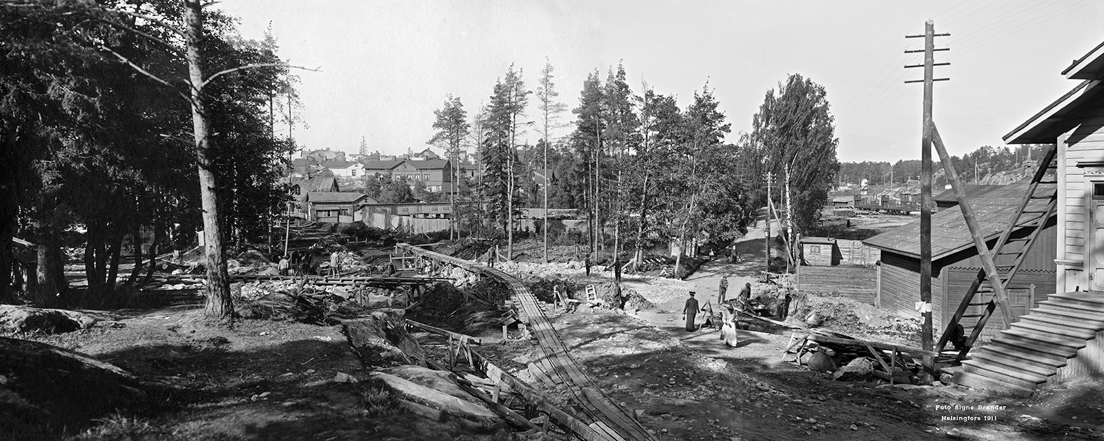 1911. Suokatu. Pasilankatua rakennetaan Pasilan huvila-alueella