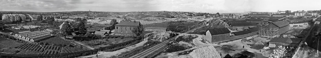 Vasen osa panoraamasta nro 37. Tämä Töölöä kuvaava osa on mielenkiintoinen. Töölön tunnistaminen kuvasta on varmaan töölöläisellekin vaikeaa.