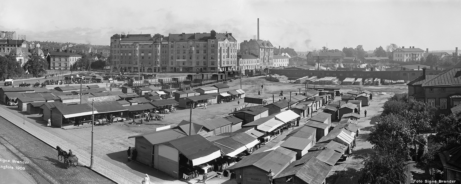1909. Hakaniementori. Itäinen Viertotie 1a, 1b. Nykyinen Hämeentie 2a, 2b, 4. Hakaniementorikatu 2. Sörnäisten rantatie (nykyinen Miina Sillanpään katu) 1, 3, 5, 7, 2 (nykyiset 4, 6). Oikealla Siltasaarenkatu 9. Kuvattu Siltasaarenkatu 8:sta koilliseen ja itään.